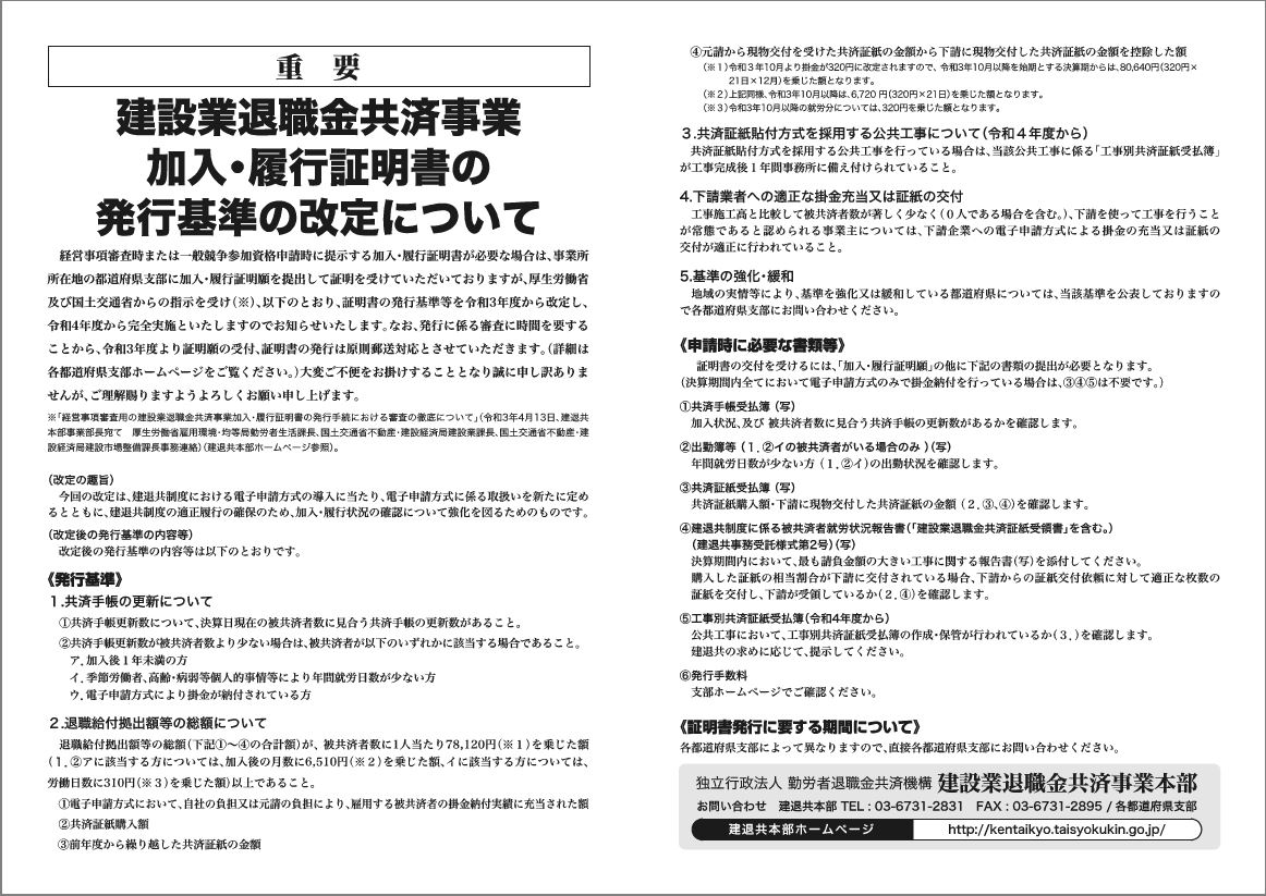 令和4年4月1日から建退共証明書発行基準が改定されます